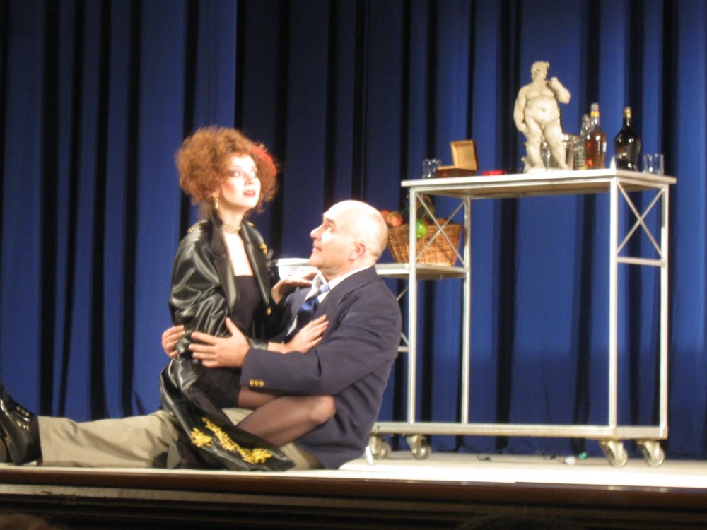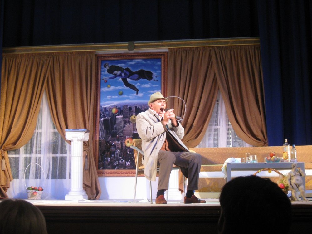 Кстати, сам Вуди Аллен грозился присутствовать на одесской премьере. В зале его обнаружить не удалось, но режиссер спектакля, преподаватель ГИТИСа Михаил Чумаченко, рассказал журналистам о недавней встрече с мэтром. Она состоялась в Дюссельдорфе, где Михаилу Николаевичу вручали награду как лучшему театральному педагогу года. В это же время в Дюссельдорф приехал Вуди Аллен.