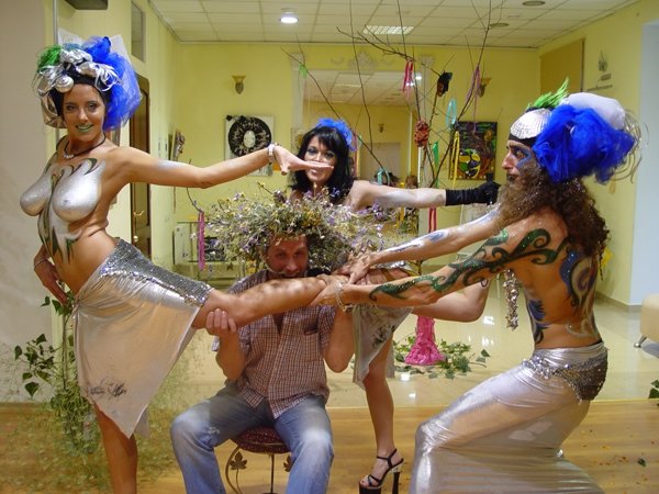 Обшарпанный фасад. Внутри — ремонтные работы. Сколько они еще продлятся — одному Богу известно. Накануне Дня города у стен кукольного театра должна была состояться акция под названием «Вместе строим театр». Предполагалось, что в этот день одесситы всем миром будут расписывать стены кукольного театра, а детишкам тем временем покажут кукольное представление под открытым небом. Увы…