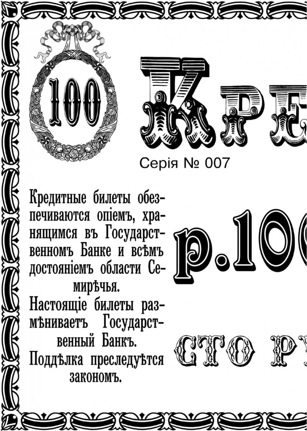 Всем хороши были те деньги, но имели маленький недостаток — они мгновенно обесценивались, ибо не имели никакого обеспечения. Правда, были города, где местное начальство всё же находило остроумный выход из положения. Например, в 1918 г. в серьёзном городе Семиречье, ощущавшем нехватку денежной массы, массу этой массы напечатали, но гарантийную подпись комиссара финансов на них заменила более убедительная надпись. Кто-то может принять это за шутку, но даём честное слово, что это подлинный документ: «Кредитные билеты обеспечиваются опием, хранящимся в Государственном банке, и всем достоянием области Семиречья». Ситуации придавал пикантность тот факт, что в любой стране гражданин, сомневающийся в надёжности денег, вправе потребовать, чтобы кредитные билеты ему обменяли на банковское обеспечение. Семиречье также твёрдо держало слово. Здесь с утра пораньше у банковского окошка выстраивалась очередь из желающих вместо денежной массы получить хранящееся в банке обеспечение, т.е. опий. Да, более твёрдых денег в Стране Советов больше никогда не было.