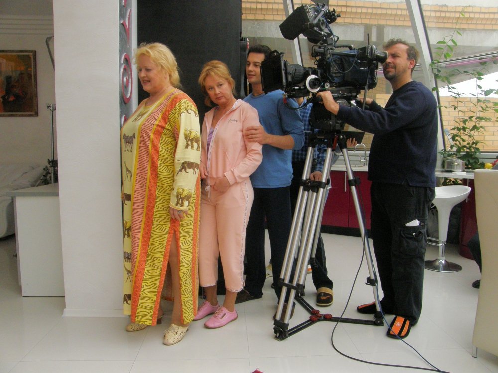 Режиссер – придирчив, слегка ироничен. С Ларисой Удовиченко у них постоянная легкая конфронтация. Ей помогает одесский юмор. Во время небольшого перерыва Лариса прилегла отдохнуть на роскошную двуспальную кровать хозяев квартиры, и так мы записали с ней интервью.