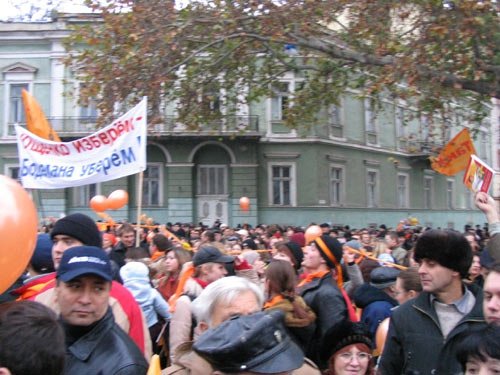 знаменами и лозунгами «Витя, спасибо за Юлю», «Руки прочь от Одессы» и другими.