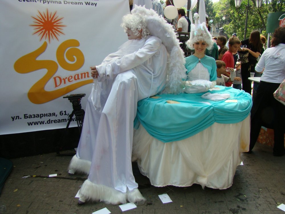 У одесситов мероприятие вызвало немалый интерес. В субботний день в Горсад пришли сотни горожан, многие были с детьми. Некоторые малыши с шумом носились в толпе, другие завороженно наблюдали за трехметровым клоуном на ходулях, третьи то и дело просили папу или маму взять им еще сока у «девушки-лебедя».