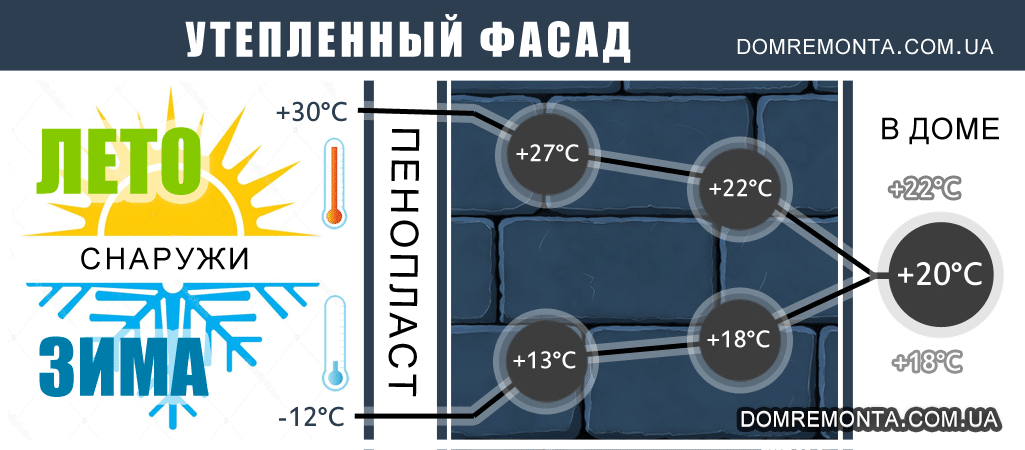 60–300 гривен за м2 — стоит утепление фасада пенопластом. Как правило, такие траты вполне обоснованны, ведь от 30 до 80% теплопотерь происходит из-за неутепленных стен.