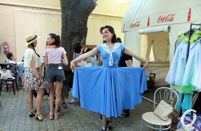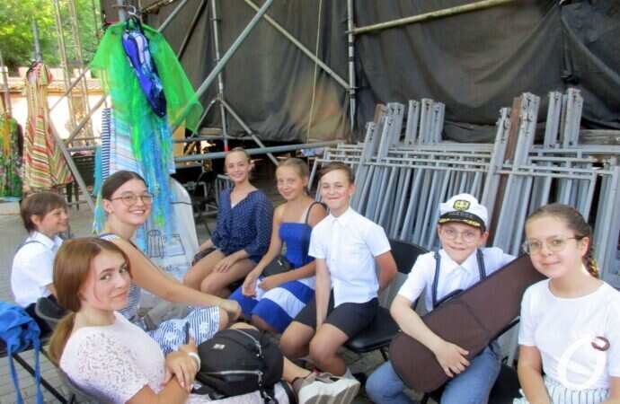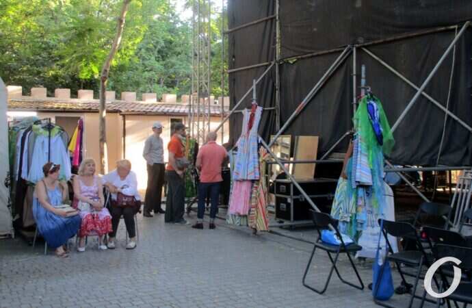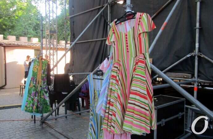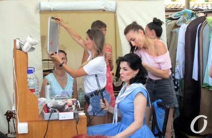 Автобус делал много ходок: декорации, светоустановки, костюмы, реквизит, музыкальные инструменты за один раз не доставишь, не получится. И вот уже там, за сценой, крошечное пространство превращается в нечто, где, кажется, занят каждый сантиметр. Тут артисты переодеваются, тут — гримируются, тут оттачивают ту или иную сцену. Даже противопожарный щит стал куском «костюмерной». А еще жара. Но нужно видеть, как улыбаются артисты перед выходом на сцену. Позитив нисколько не наигранный: они также так же соскучились по зрителю, как и зритель по ним.