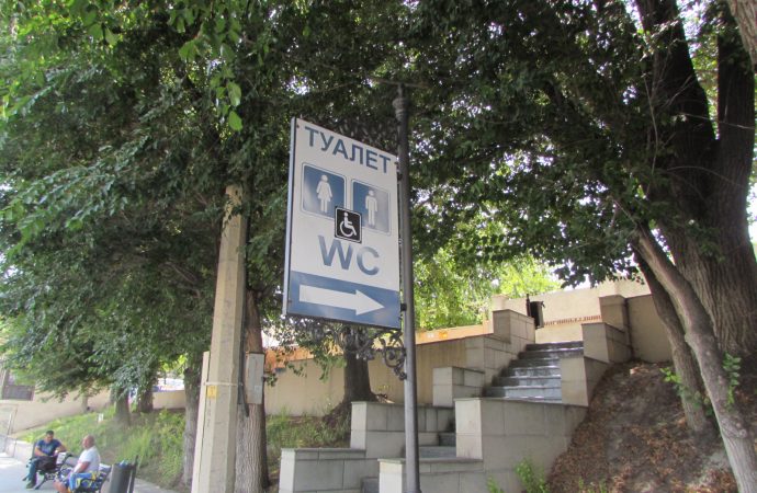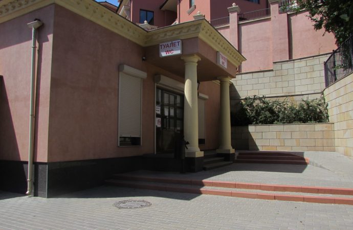 Также, если свернуть влево, не доходя пару метров до набережной, можно найти бесплатный туалет. Выглядит весьма прилично. К нему есть указатели над пляжем. Дальше по набережной расположен и медпункт.