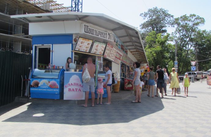 На набережной почти нет магазинов и закусочных, их можно найти ближе к 15-й Фонтана. Есть тут только кофейные автоматы, а также две будки с фаст-фудом и напитками, которые расположены напротив входа на пляж. Шаурму там продают разнообразную, но цены на неё завышены: от 72 до 97 гривен; хот-доги – от 50 до 85 гривен. Воду можно найти за 20 гривен (0,5 л), пиво за 25 гривен и мороженное за 20 гривен.