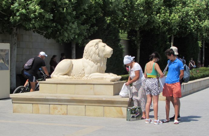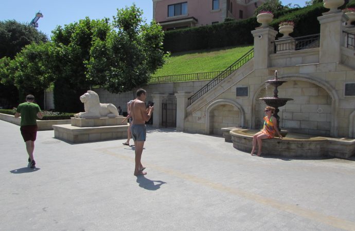 По набережной приятно просто прогуляться: она представляет собой аллею с декоративными цветами и вымощена гранитной брусчаткой. Скульптурная группа «Львы и фонтан» тут уже давно стала фотозоной. Кто-то фотографируется, а кто-то возле неё назначает встречи или же использует как место, где можно поставить сумку. Напомним, что недавно скульптуры львов восстанавливали.
