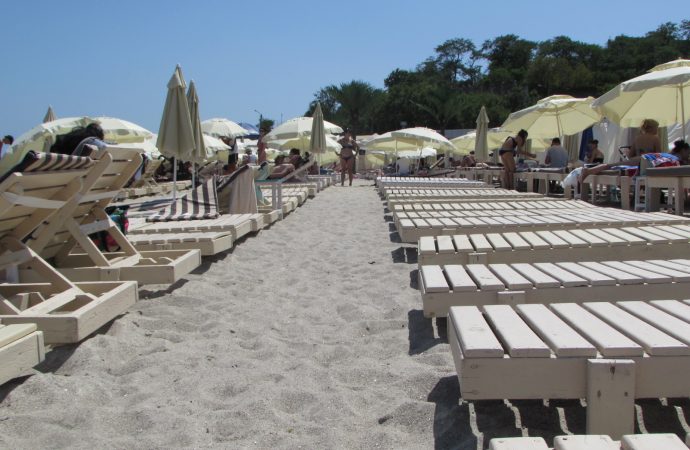 Добавим, что в песчаной зоне расположено достаточное количество урн, так что территория чистая. Тут даже за окурки, брошенные в песок, можно получить выговор от сотрудников пляжа.