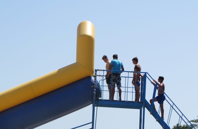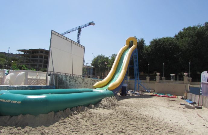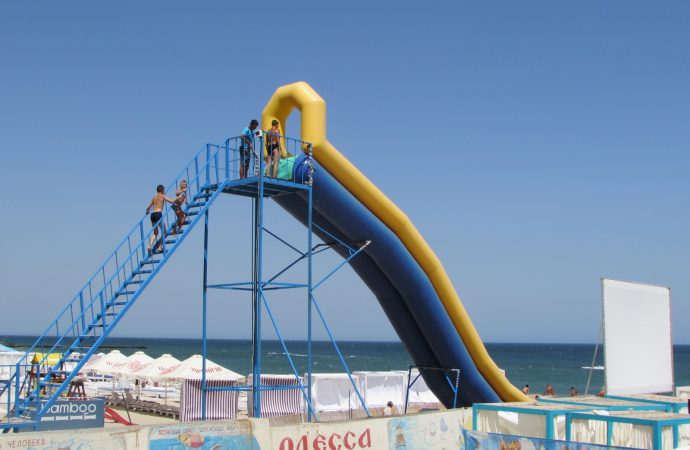 Приятное дополнение ко всему этому – детская площадка. А по соседству с этой частью берега находится и водная горка. Цена за один спуск – 10 гривен, за 6 спусков – 50 гривен.