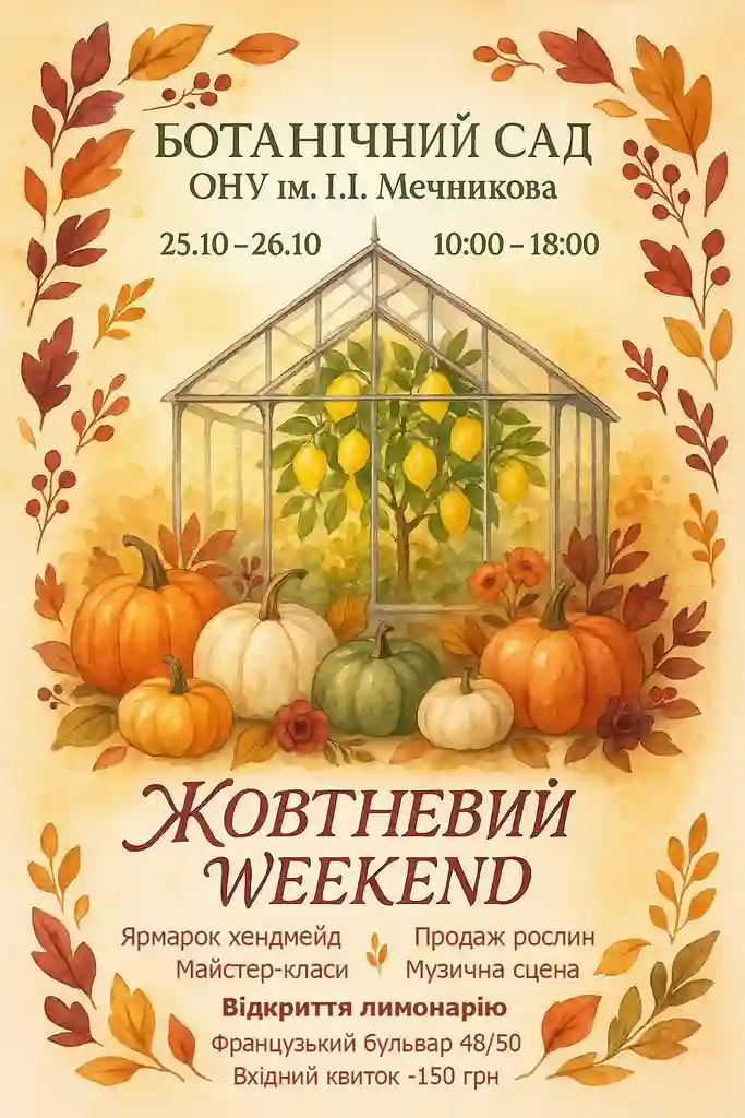 Гулять по ботаническому саду приятно в любое время года. В эти выходные это можно сделать еще и с пользой, ведь все собранные средства пойдут на восстановление сада, который уже не раз пострадал от российской агрессии. А еще гостей ждет вновь восстановленный лимонарий, яркие фотозоны, музыкальная сцена, фудкорт, рыцарский турнир и продажа растений.