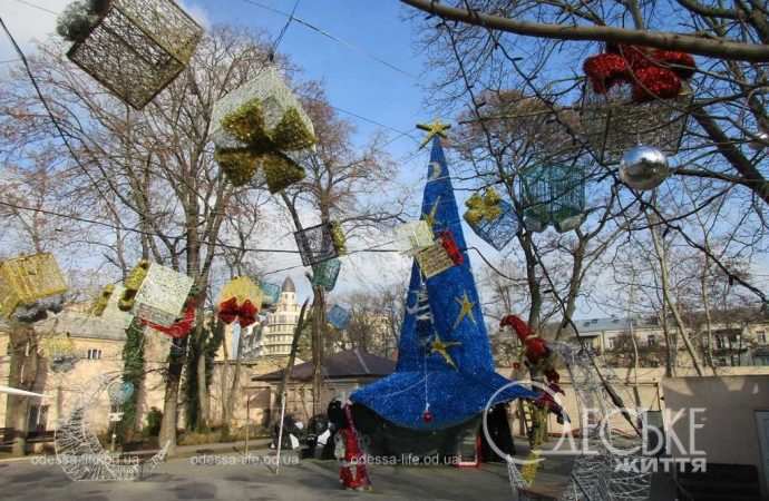 Вот, например, Летний театр Городского сада меня удивил снова: там все еще — Новый год. Настоящий — с елками и украшениями.