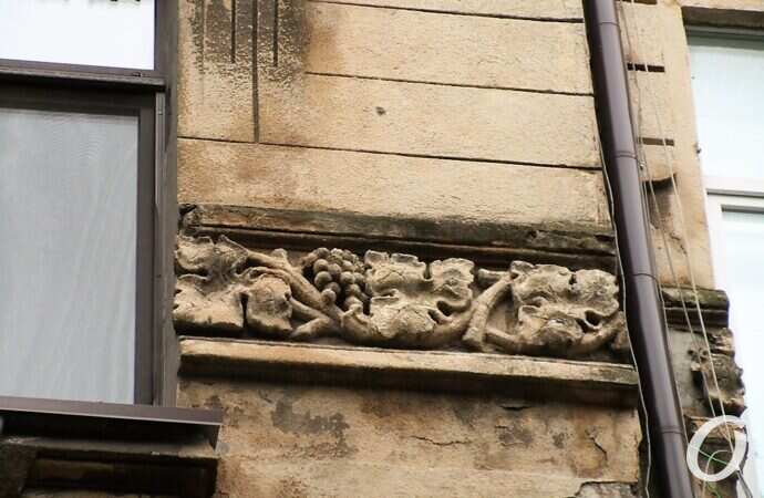 «Помимо ваз, дом с течением времени утратил и несколько по-настоящему значимых элементов. Угловая часть здания некогда венчалась массивным аттиком-постаментом, служившим основанием для скульптуры лежащего льва. Фланкирующие угловую часть пилоны были изысканно и обильно декорированы, оканчиваясь большими скульптурами орлов. Маскароны последнего этажа со стороны Маразлиевской утрачены все до единого, но сохранены со стороны переулка Нахимова. Большая часть балконов лишилась каменных стоек ограждений, однако, по большей части, кованые элементы сохранила. На углу, на первом этаже, находилось торговое помещение и дом имел соответствующее решение фасада в том месте, но сейчас оно закрыто пристройкой или уничтожено», — сообщает «Архитектура Одессы».