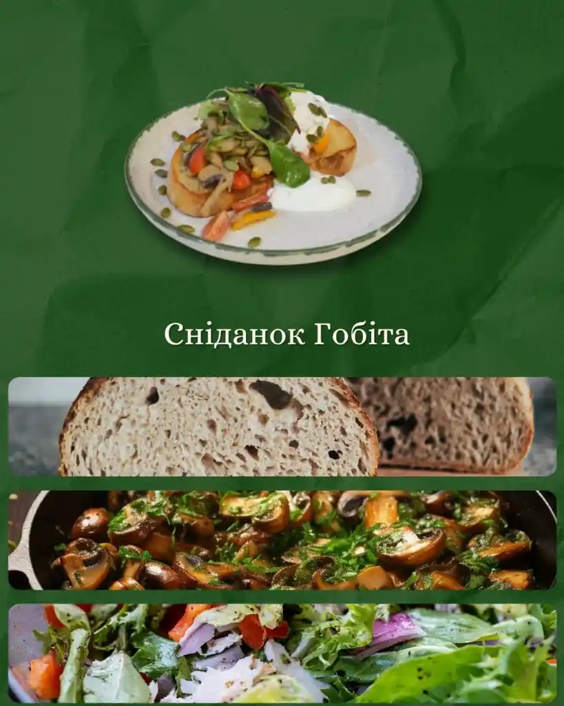 - Завтрак Хоббита (тост, яйцо, грибы, зелень) — 230 грн