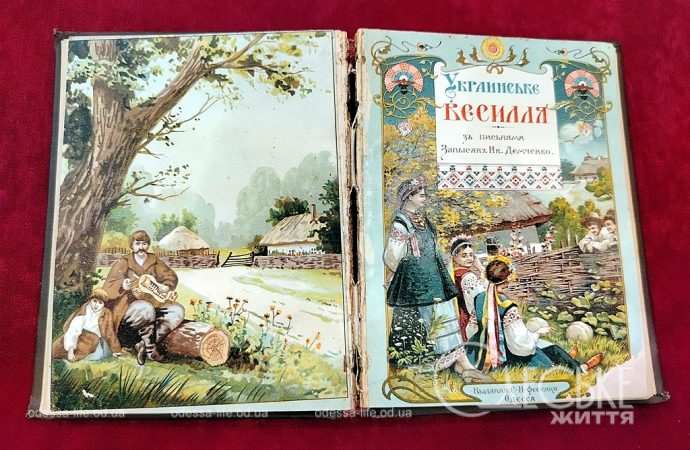 А вот издававшиеся там книги еще можно подержать в руках… Вот сборник украинских песен с нотами. А еще с иллюстрациями. Даже можно увидеть, как происходило сватовство в древние времена…