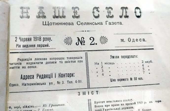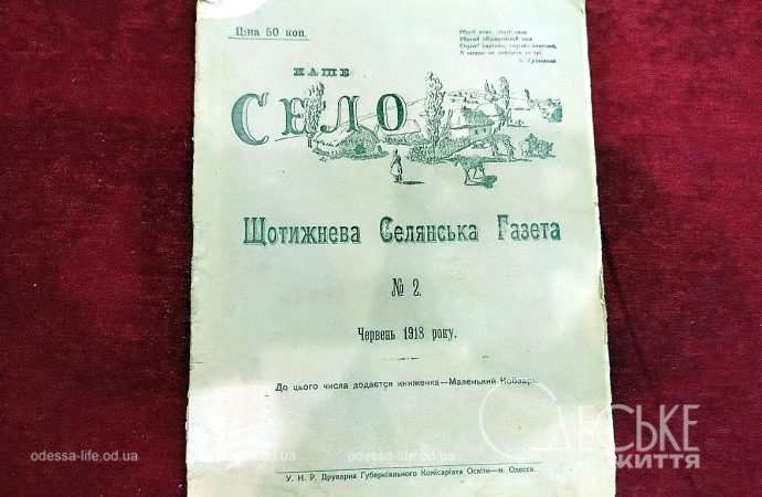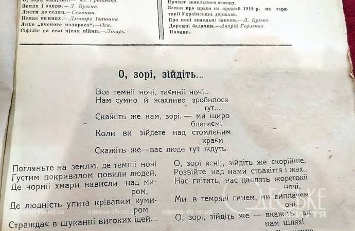Экземпляр еженедельной крестьянской газеты «Село», издававшейся в Одессе, открывается стихотворением Ю.Грищенко «О, зорі, зійдіть…»…
