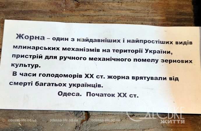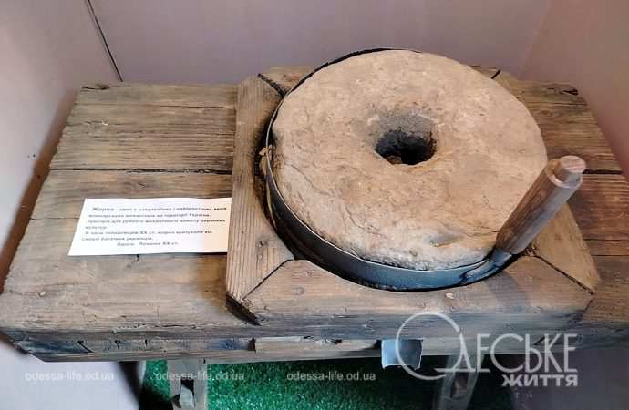 Еще до того, как мы заглянем в сам Музей, нас встретят жернова ― настоящие (в Музее, кстати, все «живое»). Они сделаны в начале ХХ столетия. Были в свое время найдены на Пересыпи.