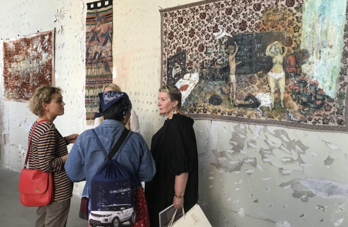 Выставка расположена в двух залах и если первый, по задумке Игоря Пароника – это цельное, единое пространство, до второй – хаос и потеря ориентиров. И стены, подготовленные под ремонт как нельзя удачно подчеркивает происходящее. Манекен, обернутый в золотую парчу – финальная точка выставки.