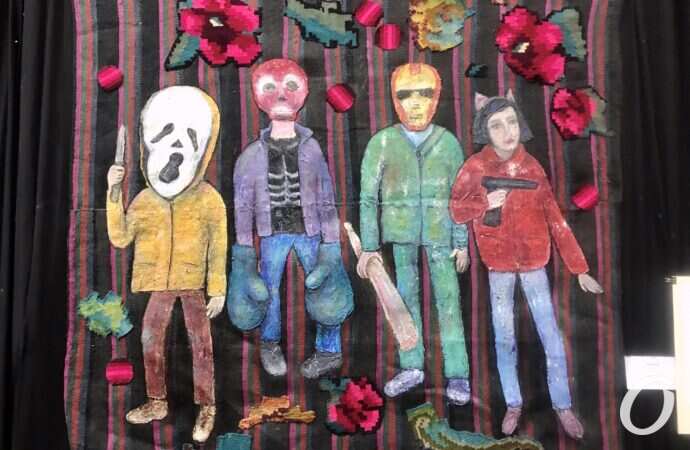 Почему так вышло, что многие ощущают себя перекати полем, оторванными от своих корней? Размышления на эту тему ищем на холстах-коврах. Это, кстати, еще одна загадка, почему автор решила выполнить серию работ “Сны моего детства” на старых домотканных дорожках, которые она собирает по всей Одесской области. Ирина считает, что именно ковры отображают код идентификации народа. Их одинаково ткут и плетут в разных уголках мира, а вот по орнаменту можно определить, к какому народу они относятся.