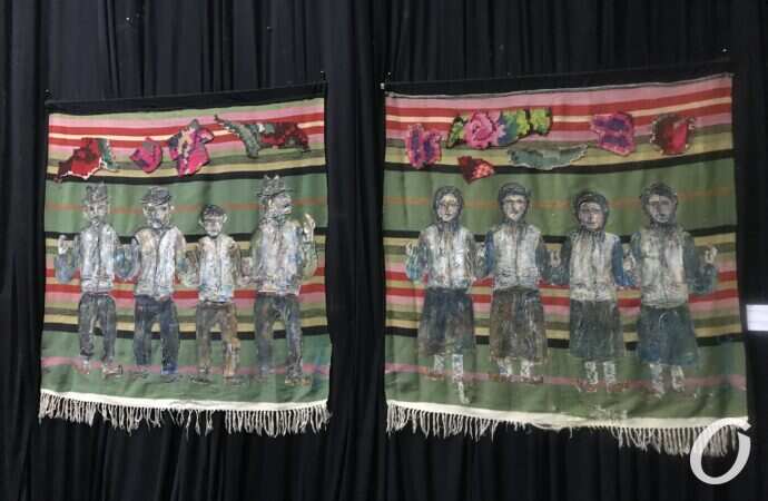 Ирина не реставрирует их, не улучшает. Они так и остаются висеть на музейных стенах с отметинами времени – дырками, потертостями, потрепанными краями. И как на старинных иконах на них проступают лики тех, кто их создавал и кому когда то они служили. Эти лики меняются от патриархальных образов гагаузских бабушек и дедушек до современных инстаграмных. И это ни хорошо не плохо, это просто констатация факта. Несмотря на наивный стиль изображения и простоту, тут есть что порассматривать, передвигаясь от полотна к полотну, изучая каждую зацепку и пятнышко.