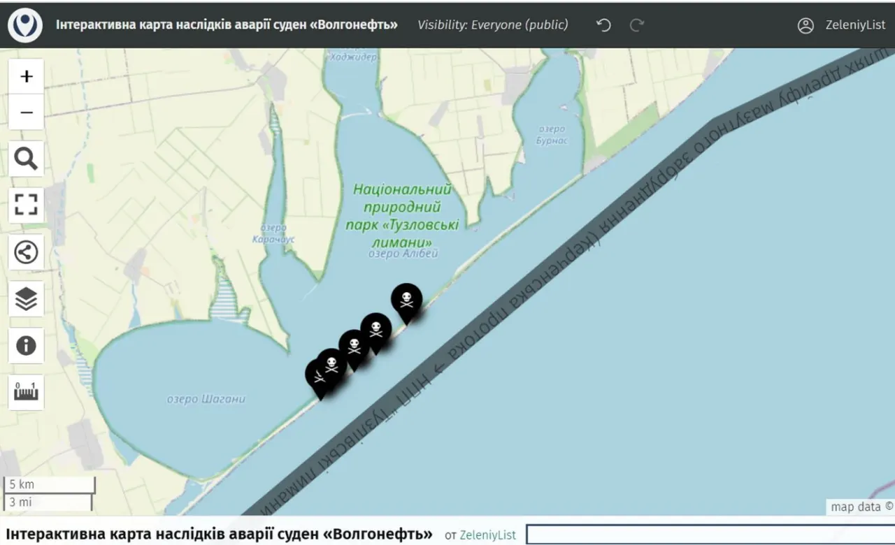 По данным ОО «Национальный экологический центр Украины» (НЭЦУ), спутники Sentinel-1 и Sentinel-2 фиксировали непрерывные шлейфы мазутного загрязнения с декабря 2024 до осени 2025 года. Темные «коридоры» загрязнения двигались на север, к украинскому побережью, преодолев более 600 километров.