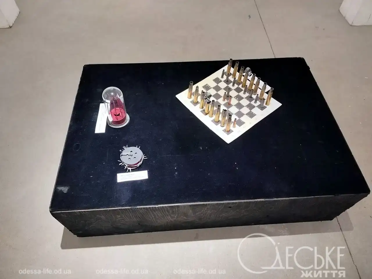 - Работы созданы из бытовых вещей и реальных артефактов войны, в частности гильз
