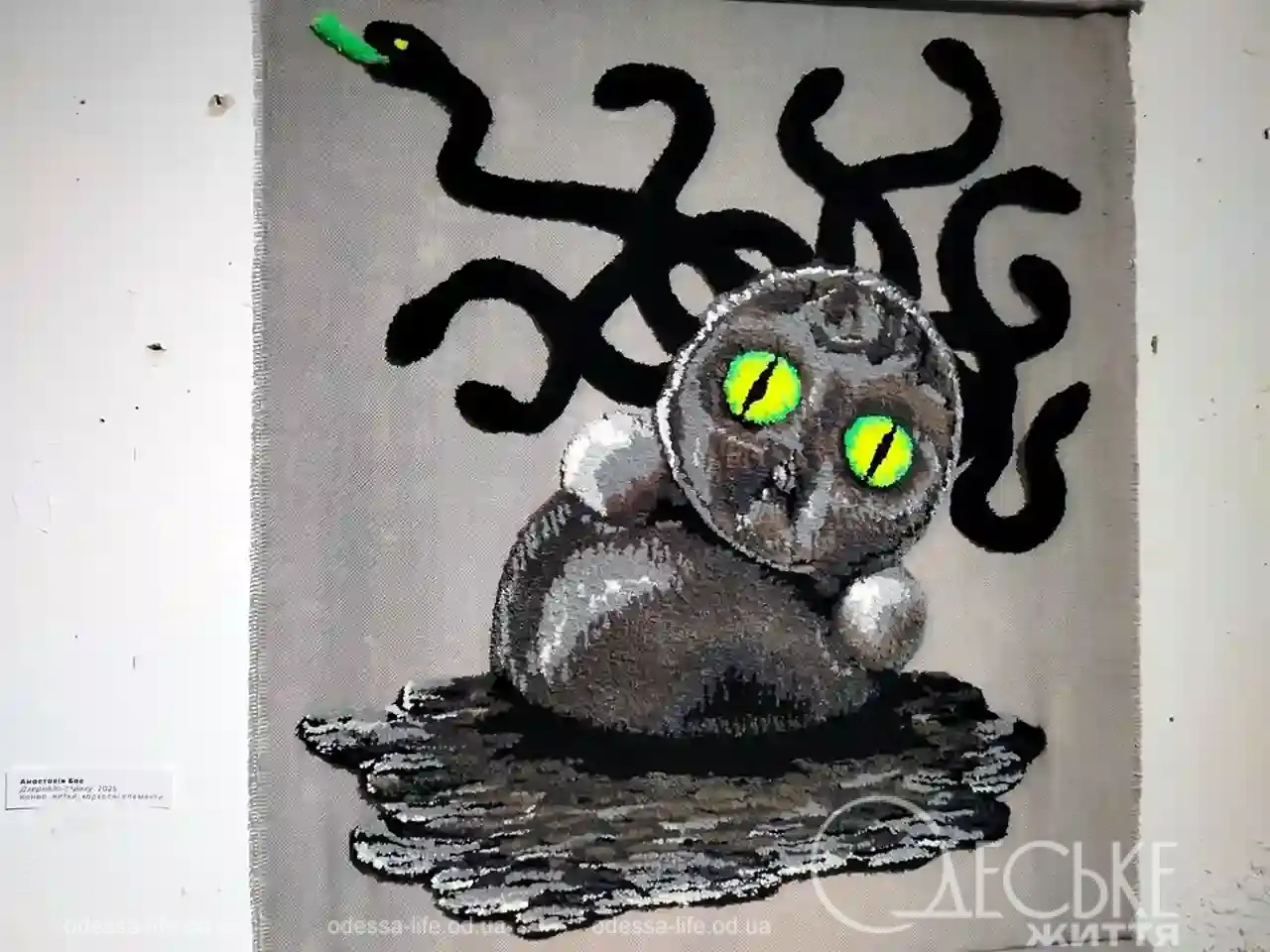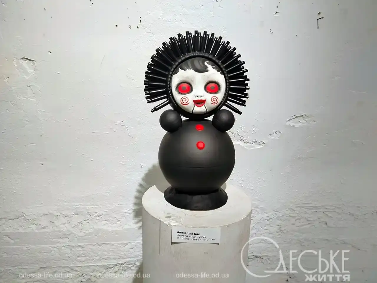Другая часть выставки — работы Анастасии Бас. Они уже больше про трансформацию и попытку найти опору в будущем. Ее «дерево жизни», созданное из гильз и артефактов войны, выглядит как очень честный ответ на реальность: когда вокруг много боли, приходится буквально собирать смысл из осколков. И одновременно — это про надежду. Про желание вырастить что-то живое даже там, где, казалось бы, для этого нет почвы.