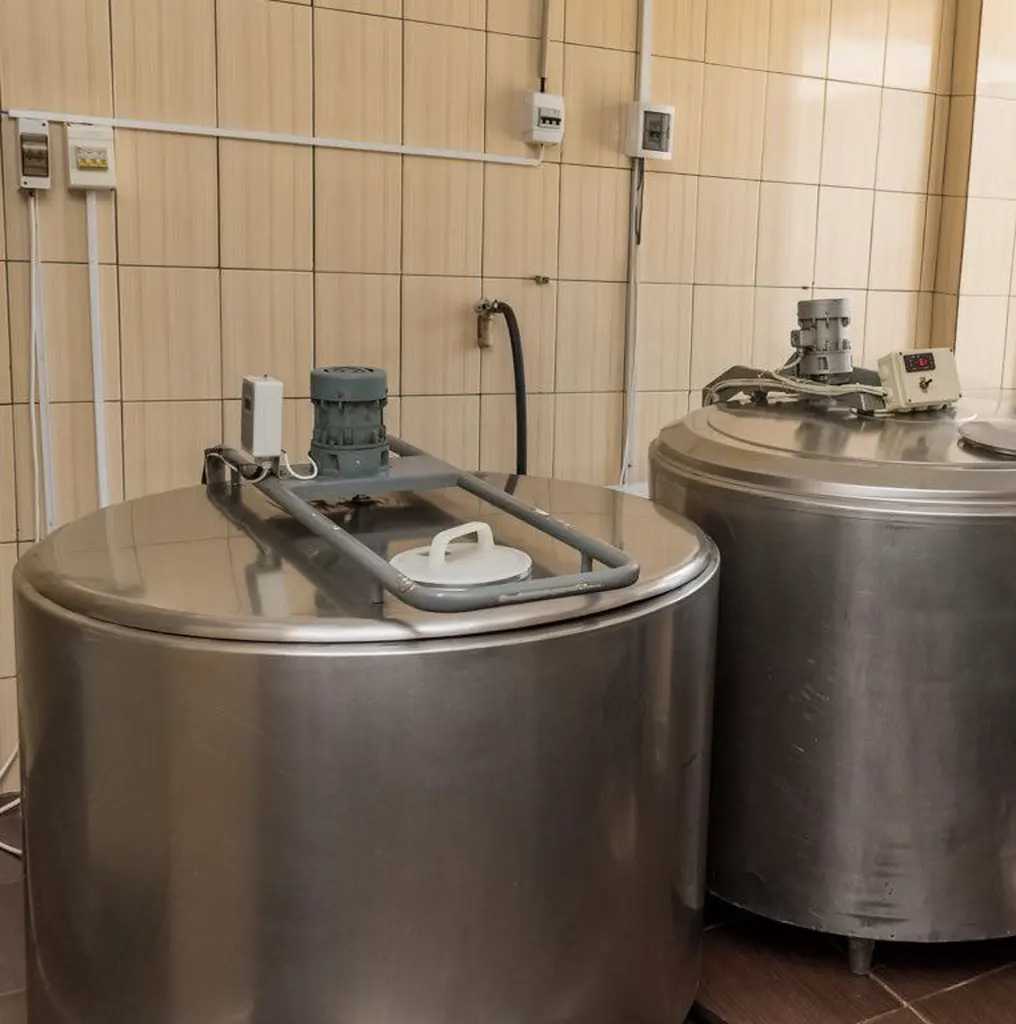– У нас есть всё, – говорит хозяйка. – Это охладители, где молоко обязательно созревает хотя бы 24 часа — только тогда раскрывается весь его аромат. Молоко обязательно пастеризуется. Для каждого этапа — отдельное помещение со специальным оборудованием. У нас есть свой подвал, где наши сырочки дозревают.