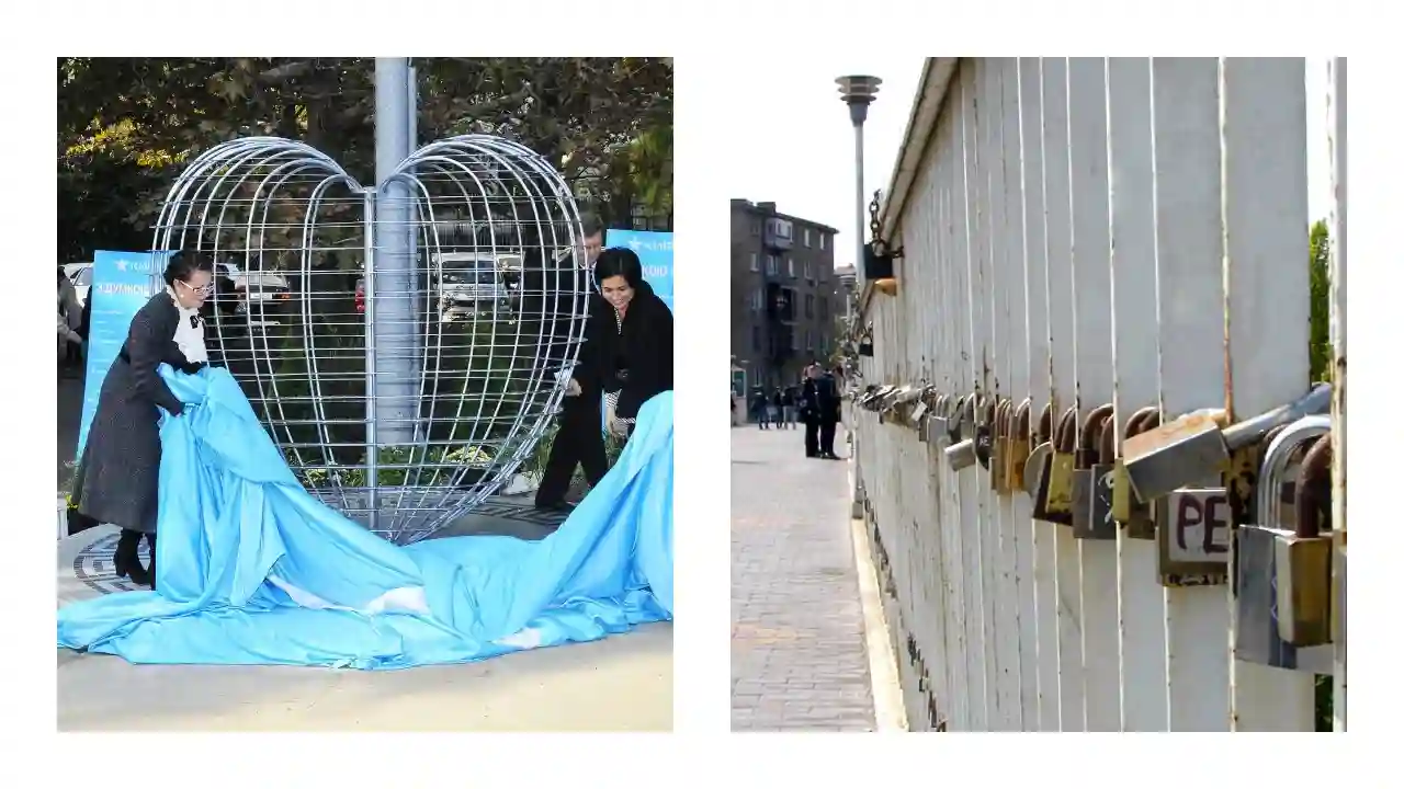 Так родилась идея установки рядом с мостом арт-объекта «Влюбленное сердце», на котором молодожены могли оставлять замки с надеждой на долгую семейную жизнь.