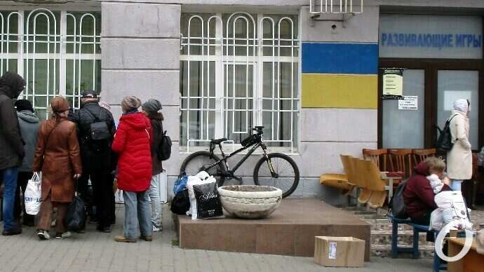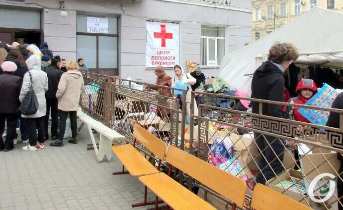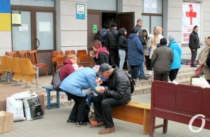 Здесь беженцы и малоимущие одесситы. А еще те одесситы, которые пришли за помощью для тех малоимущих и стариков, что живут рядом с ними – например, пожилая соседка осталась одна, или старик во дворе одинокий живет, сам за помощью не в силах обратиться.