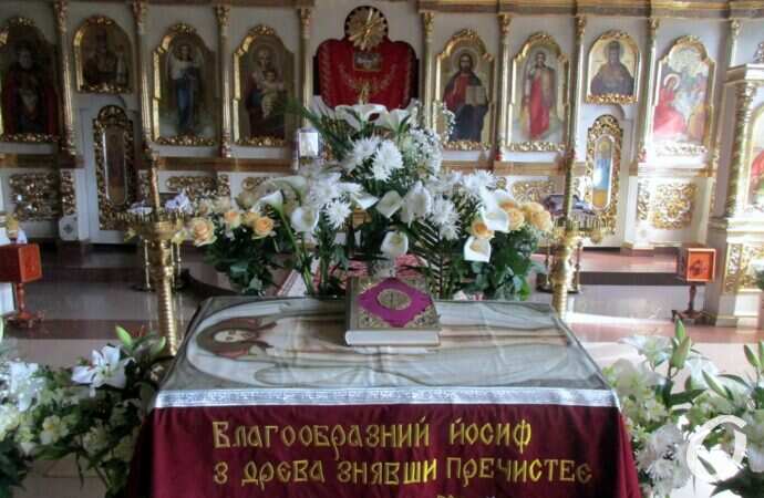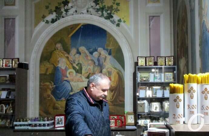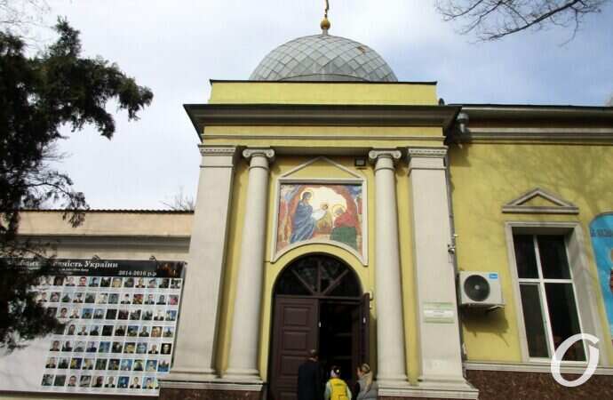 …Храм Рождества Христового ПЦУ на ул. Пастера встречает наведением особой чистоты и порядка. Слева от храма — известная стена с портретами погибших за Украину.
