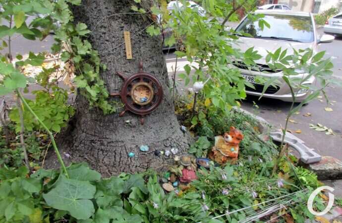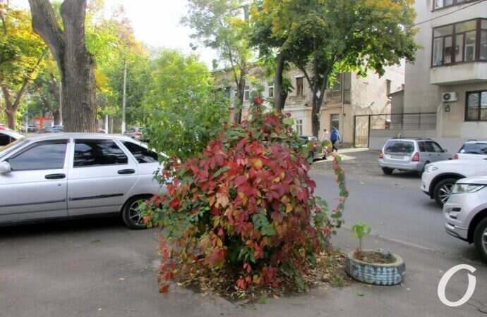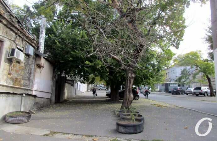 Изюминки одесской Раскидайловской: много зелени, чуть настенной живописи и шины с цветничками