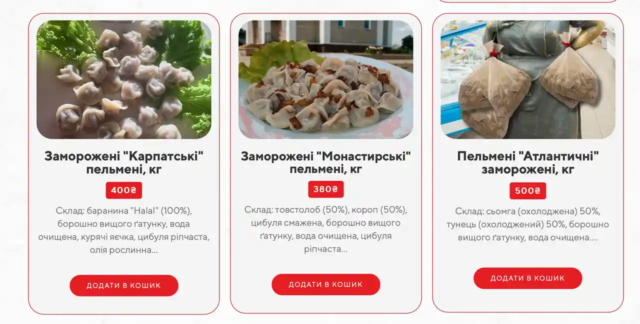 - Пельмени «Монастырские» (с рыбой) – 160 грн
