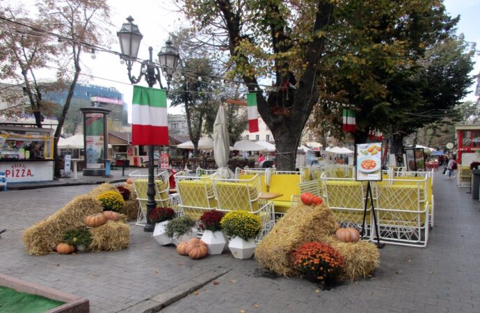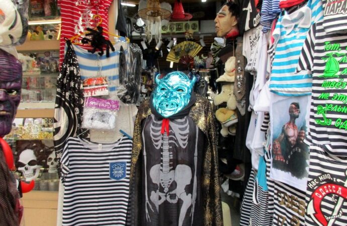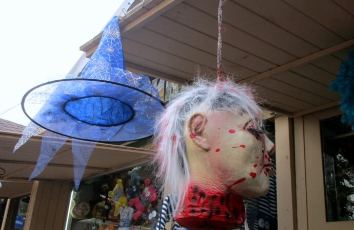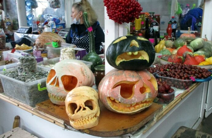 Рулит тут главная улица города, здесь каждый шаг – своя фотозона, рынки города тоже быстро подключились, и даже желают «счастливого Хэллоуина!». А почему бы и не пожелать? Ведь для чего страшилки устанавливают? Правильно, для того, чтобы испугать нечисть. И суть праздника – в этом, а не просто в соревновании, кто выставит самого жуткого «страшнючку». Изначальное название праздника – Вечер всех святых.