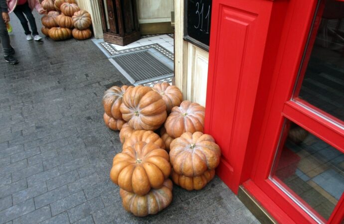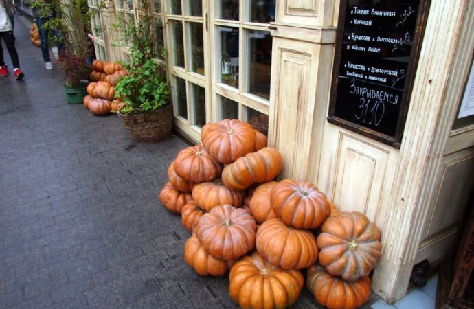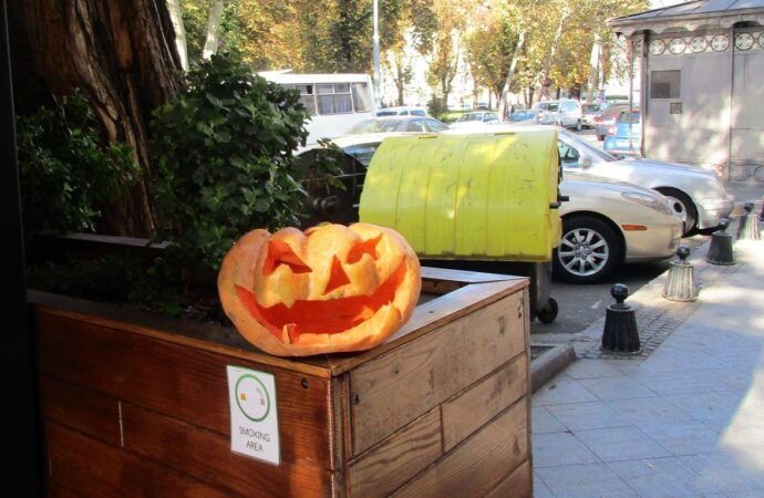 И все же ближе к Хэллоуину улицы города таки превратились в фотозону, где тыквы всех размеров и оттенков (вырезанные в виде ужасающей мордочки или просто так) напомнили о том, что в ночь с 31 октября на 1 ноября начинается «страшный праздник».