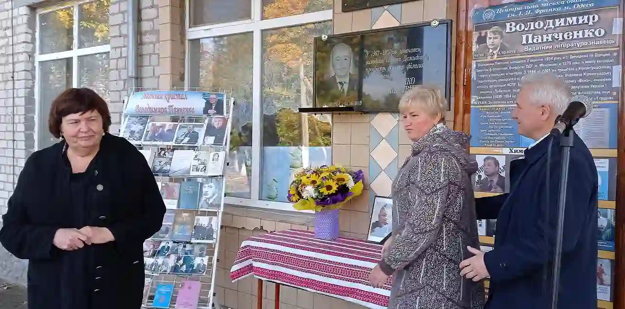 Первыми ещё в 2020-м почтили память о выдающемся уроженце Любашёвщины и своём почётном гражданине жители Кропивницкого. Там его именем назвали городскую библиотеку (ей Панченко ещё при жизни подарил 700 томов из собственной коллекции) и бывшую улицу Декабристов.