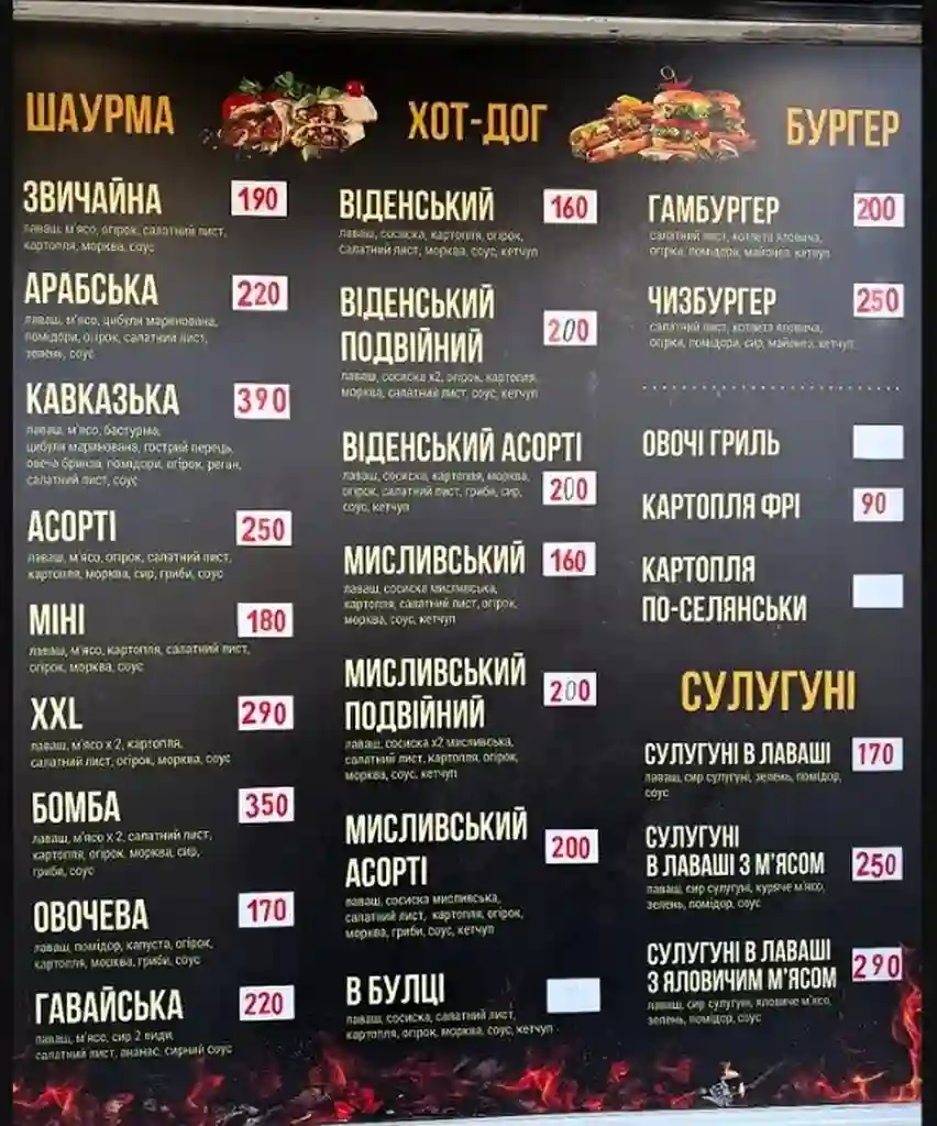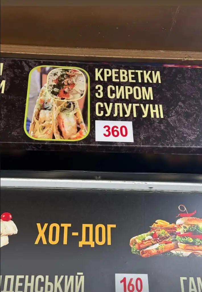 Эта позиция, наоборот, подешевела — с 380 грн до 360 грн. Креветки обжаривают с прованскими травами и лимонным соком, добавляют сулугуни и зелень. После сборки шаурму дольше держат на гриле: сыр плавится, лаваш становится хрустящим, а начинка — более насыщенной. Это один из самых сытных вариантов в меню.