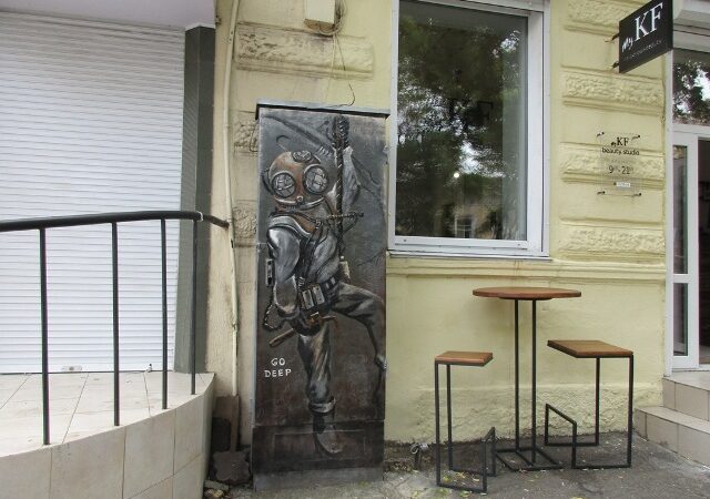 Появился недавно еще один персонаж – водолаз. Он прикрыл неказистый внешний вид щитка в переулке.