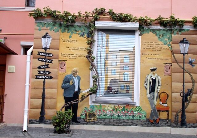 Начнем с того, что он сохранил на фасадах домов большое количество старых табличек. Здесь даже можно встретить уличный указатель «Переулок Маяковского», сохранившийся с советских времен, отыщете тут и «Соблюдайте чистоту», и «Ваш индекс».