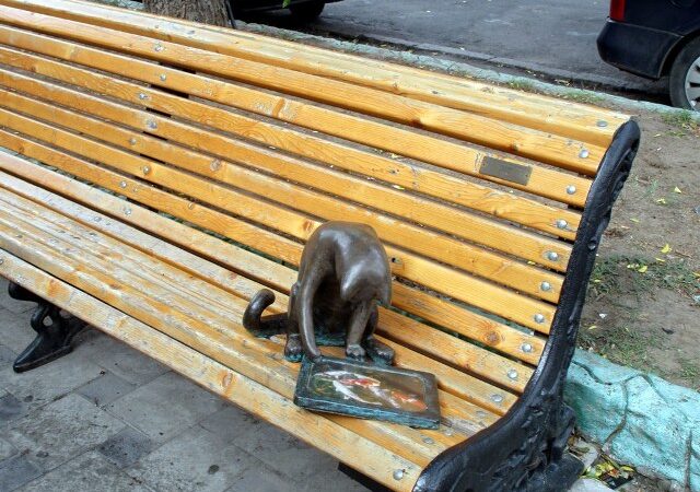 Ну а еще в малюсеньком переулке имеется арт-объект – кошка Пушинка, она же геймер, созданная Татьяной Штыкало. Киска расположилась прямо на скамейке, внимания на вас не обращает: следит за происходящим действом на планшете. Живых котиков вы здесь тоже встретите: полны собственного достоинства, как и большинство одесских котов.