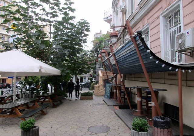 Практически все дома, а их немного, здесь – памятники архитектуры. И, кстати, за малым исключением, все они – в довольно неплохом состоянии. Некоторые блистают памятными табличками, некоторые – современными названиями на грани прикола. «Ля тюлька» чего только стоит! Салон маникюра-педикюра именуется тоже по-нашенски – «Ручки-ножки». Имеется и косметологический центр Mayakovskiy.