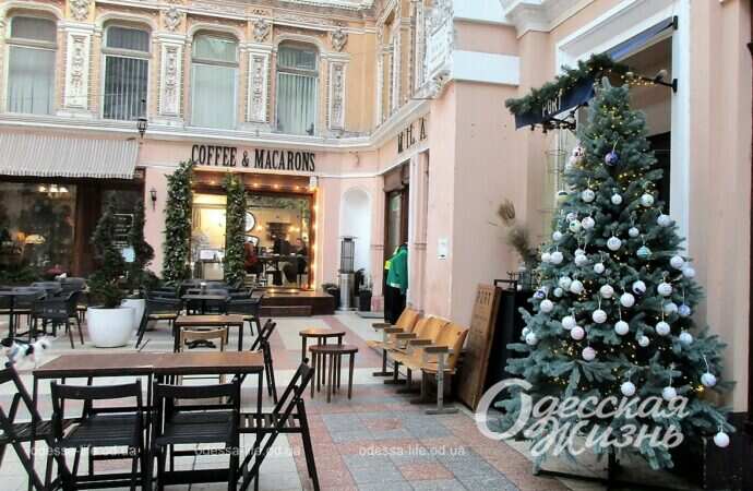 Маловато предновогодних примет в центре Одессы? Хочется больше? Тогда вам — в Пассаж. Здесь как раз постарались создать сказочно-рождественско-новогоднее настроение «по полной». Елок сразу несколько. И, кстати, не забудьте отыскать еще одну, завернув во «внутренний дворик» Пассажа, который еще называют самой узкой улочкой Одессы.