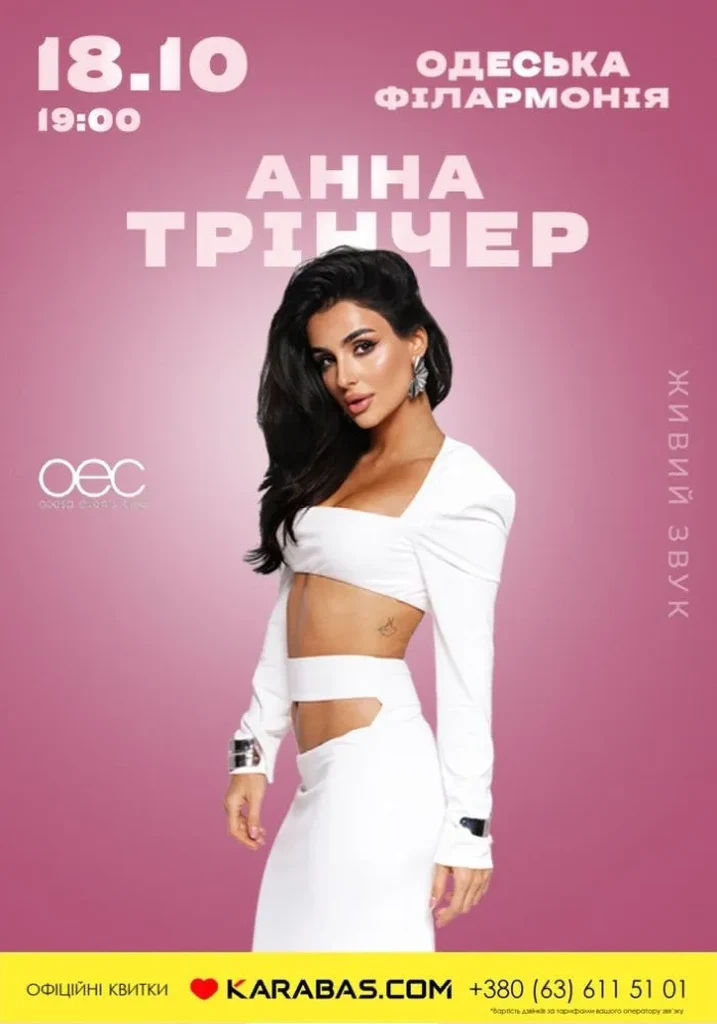 В субботу Анна Тринчер подарит одесситам тёплый осенний вечер, полный света, драйва и искренности. После громкого тура по стране она возвращается на сцену с большим концертом, где знакомые хиты зазвучат по-новому — в свежих аранжировках, с яркими образами, впечатляющим видеорядом и мощной энергетикой. «Бар за баром», «Трэш», «Звёздочка, гори», «Подруга моя» и другие любимые треки превратятся в путешествие по летним воспоминаниям, где хочется петь, танцевать и снова почувствовать беззаботность.