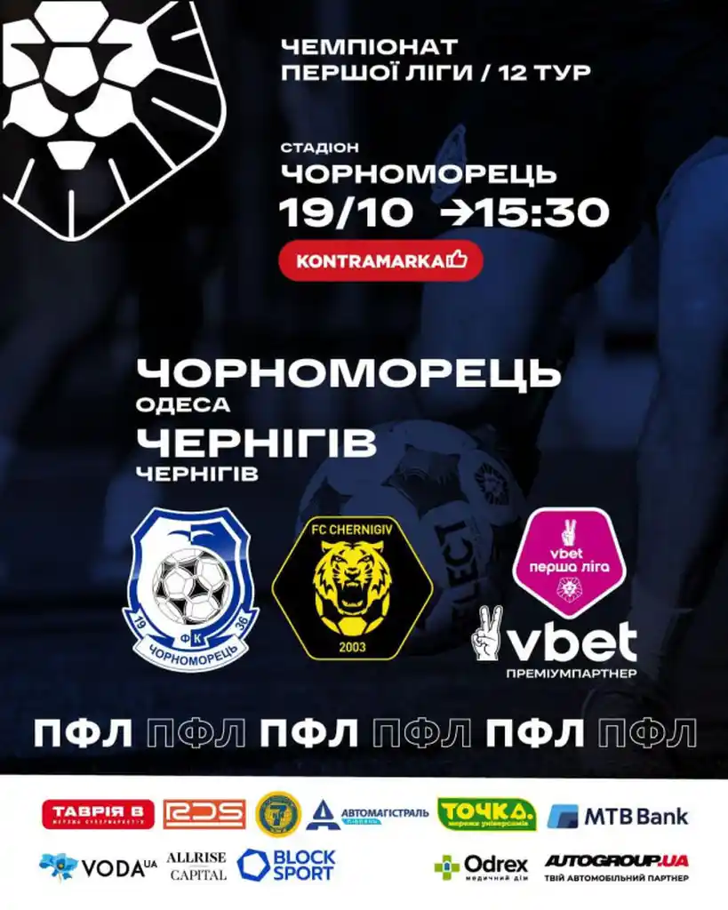 - 19 октября на стадионе «Черноморец» состоится матч между командами «Черноморец» и «Чернигов» — возможность почувствовать дух спортивной борьбы и поддержать одесский клуб.