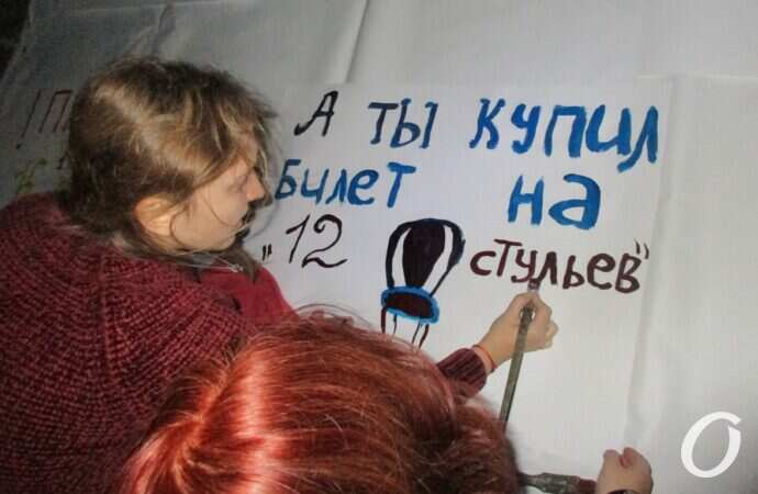 Ах, как старались гости театра! Я шептала про себя возникшее в голове: «12 стульев» — в массы, деньги — в кассу». Другие, тем временем, такое вытворяли кистями и красками при свете фонариков, что, кажется, и в самом деле испугались, что их в противном случае выдворят с парохода.