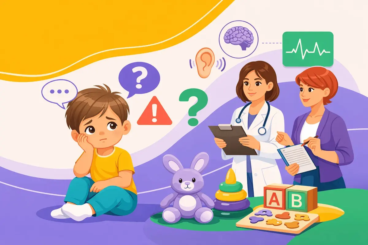 Отсутствие речи — это не самостоятельный диагноз, а симптом, за которым могут стоять разные причины. Одна из частых — нарушение слуха. Даже частичное снижение слуховой функции влияет на формирование речи, поэтому проверка у отоларинголога обязательна.