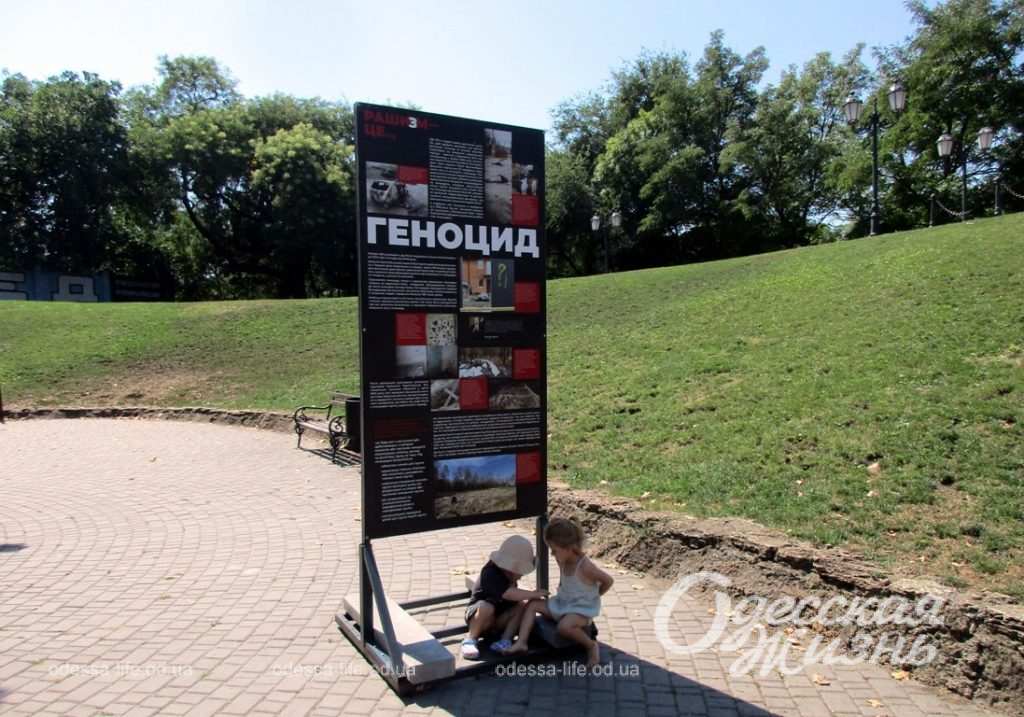 «Одесситы в последние месяцы особенно страдают от масштабных обстрелов российскими ракетами и целенаправленного разрушения культурного наследия. 16 стендов выставки подробно рассказывают о той идеологии, которая властвует сегодня в россии и привела к современной российско-украинской войне».