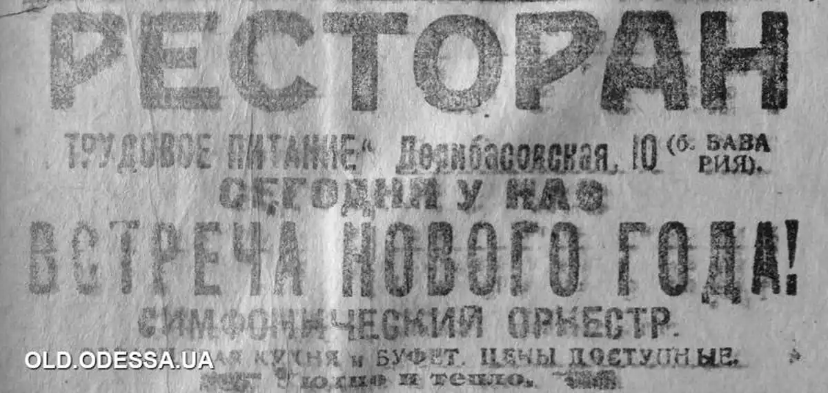 Так было до 1917 года. В 1921 году здесь открывается ресторан «Трудовое питание». После завершения эпохи НЭПа большинство ресторанов канули в Лету. Лишь через сто лет началось возрождение старых одесских традиций, и в этом подвале снова появились вкусные ароматы, зазвенели приборы и заиграла музыка.
