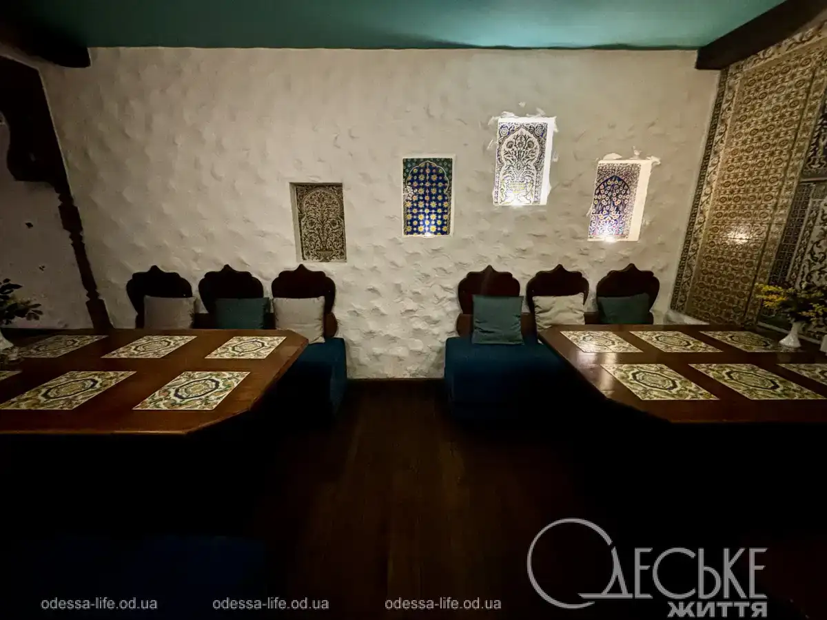 Понравилось, что они стоят на расстоянии друг от друга, а значит, вы не станете случайным свидетелем чужих разговоров. Стены залов увешаны картинами и расписаны узорами. Здесь довольно темно — свет с улицы почти не проникает внутрь.