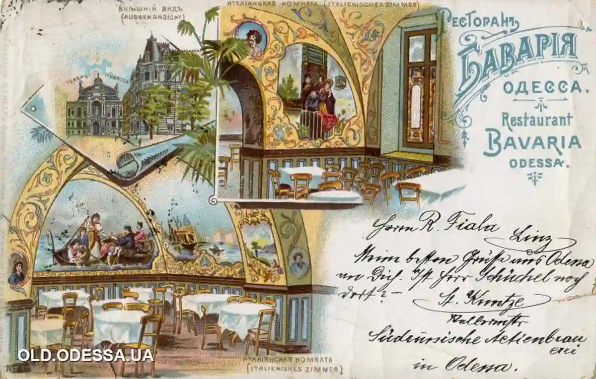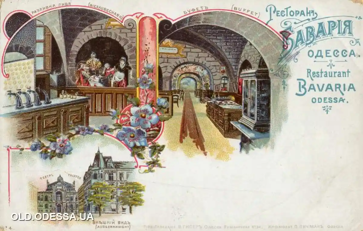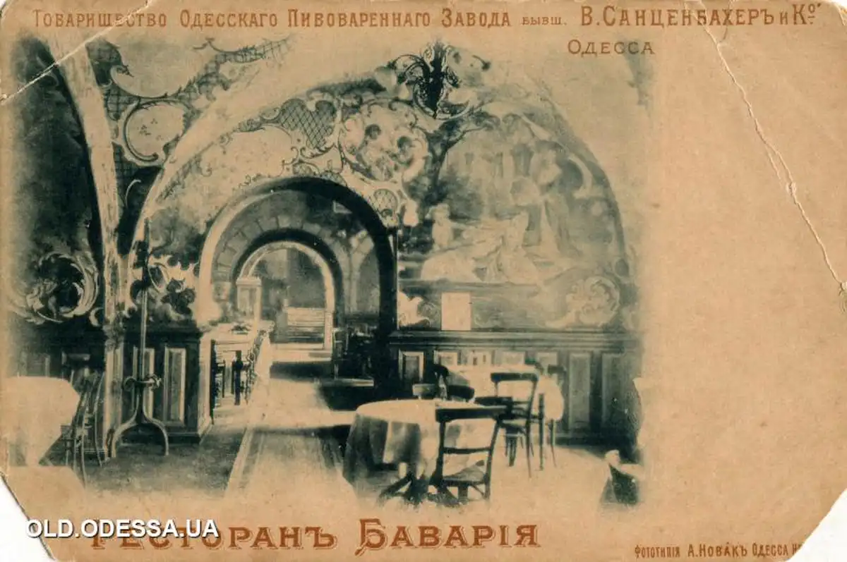 После пожара, серии перепродаж и перестроек в подвалах со стороны Дерибасовской в 1860-х появился пивной зал, так называемый биргалле, а в 1890-х — ресторан «Бавария». Днем посетителям предлагали «комплексные обеды» по 50 копеек, а вечером — изысканные блюда из меню. А еще там продавали пиво завода Санценбахера, позже Товарищества одесского пивного завода.