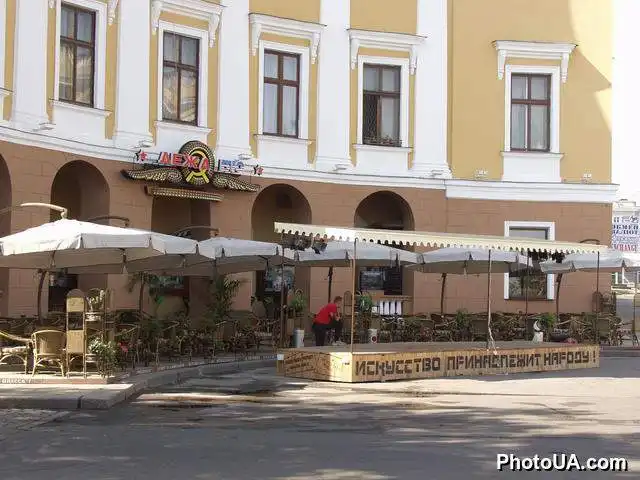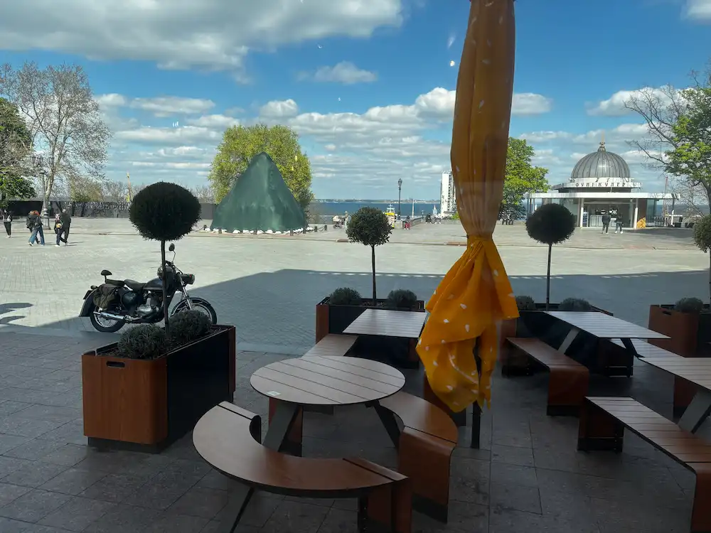 Как бы ни ругали эту сеть, но то, что в компании позаботились о приличном фасаде, – это факт. Все выглядит так, будто только что построено, – окрашенные стены, чистые окна и аккуратные зеленые маркизы, стойки с зеленью, деревянные столики и урны для раздельного сбора мусора. И даже парадную дверь не просто сохранили, а отреставрировали в известном проекте «1000 дверей Одессы». Об их деятельности мы рассказывали вот здесь.